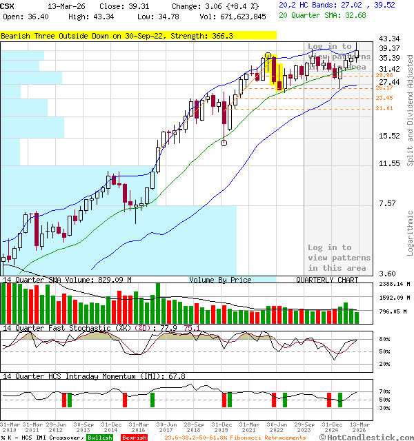7-Jan-2026 9:30 AM CST - Benzinga Here's How Much You Would Have Made Owning CSX Stock In The Last 10 Years CSX (NASDAQ: CSX) has outperformed the market over the past 10 years by 2.58% on an annualized basis producing an average annual return of 16.17%. Currently, CSX has a market capitalization of $67.02 billion.