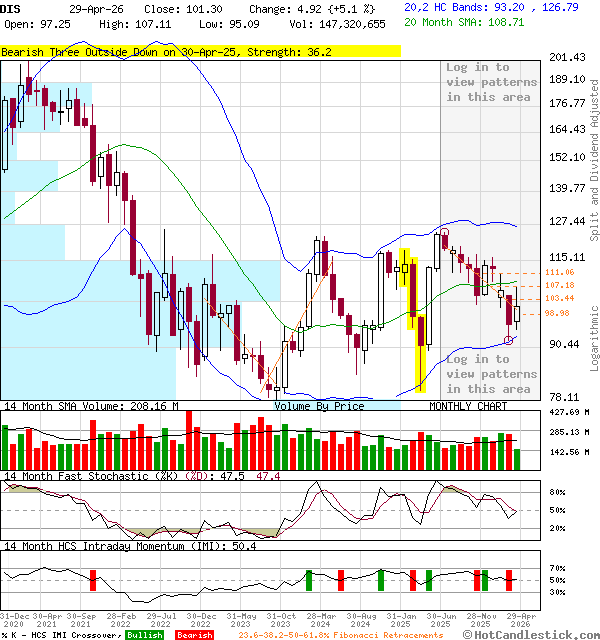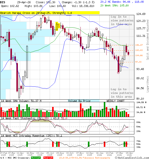 27-Mar-2026 11:15 AM CST - Yahoo Finance Disney Has a Narrative Problem and Wall Street Is Calling It Out Walt Disney (NYSE:DIS) has had a rough stretch heading into spring. The stock is down 6.49% over the past week, off 11.67% over the past month and has shed 16.26% year-to-date, sitting near $93.66 and well below its 52-week high of $124.